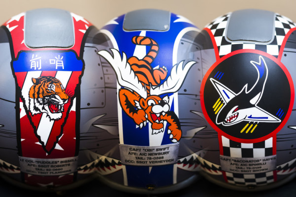 Though each squadron’s helmet wrap is different, they are meant to connect 23rd Fighter Group pilots to a common heritage that dates all the way back to World War Two.