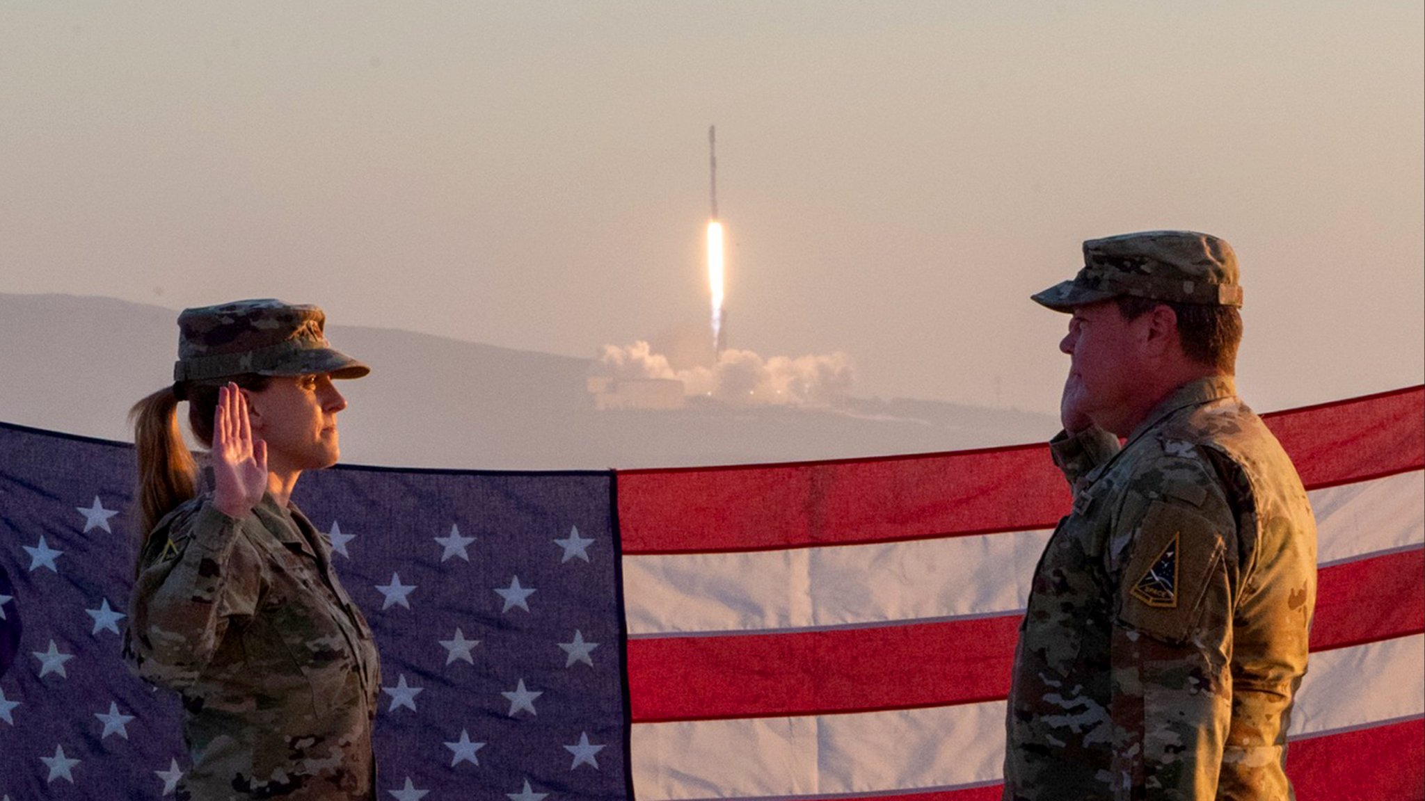 Vandenberg Space Force Base in California shared a jaw-dropping photo on Saturday, showing Air Force Master Sgt. Eric Burks reenlisting as a SpaceX Falcon 9 rocket takes off from the launchpad.