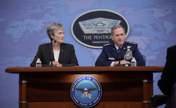Secretary of the Air Force Heather Wilson and Air Force Chief of Staff Gen. David L. Goldfein host the State of the Air Force address at the Pentagon, Washington, D.C., Nov. 9, 2017.U.S. Air Force/Staff Sgt. Rusty Frank