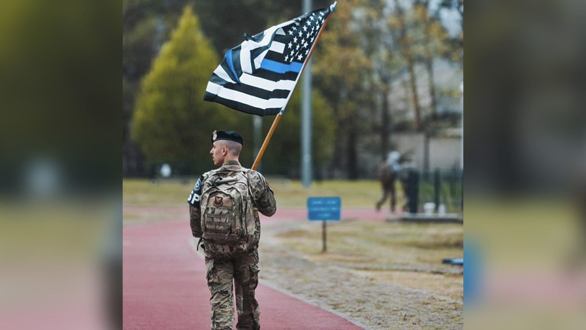 The airmen had carried the flag while in uniform during a 24-hour ruck march to celebrate National Police Week, as Jennifer H. Svan of Stars and Stripes first reported.
