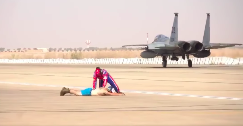 The Air Force will have to add “shake ‘n’ bake” to its list of core values, because two enterprising airmen acted out a hilarious scene from the beloved comedy Talladega Nights: The Ballad of Ricky Bobby on the flight line at Prince Sultan Air Base in Saudi Arabia this summer.