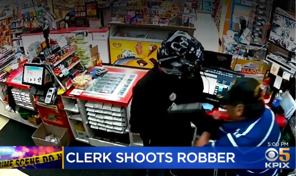 Video of the robbery shows one of the suspects jump over the counter, and pistol whip Kasprowicz, forcing him to the ground. While that suspect emptied the register, the other assailant went to the back of the store and held the manager up at gunpoint, according to a local Fox News affiliate.