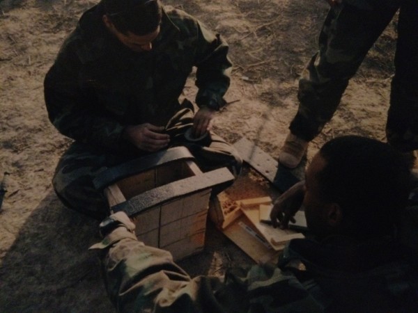 Then this gunnery sergeant is like “that’s not how you do it, this is the way we did it in Desert Storm.” And he grabbed a big stick and goes to shove it in there and we’re like “no, don’t do that,” and he’s like “Shut up, I know what I’m doing. You gotta jam the stick in there to create vents and craters and everything.”