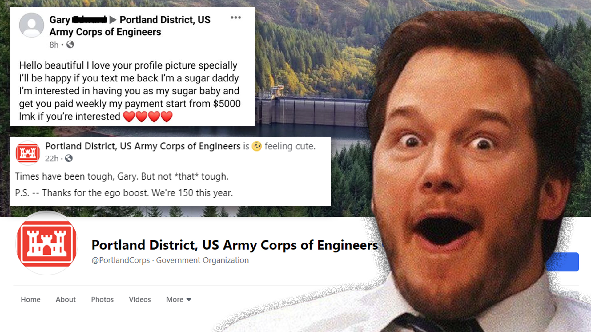 On Tuesday, the official Facebook account for Portland’s Army Corps of Engineers unit shared a screenshot of a comment they appeared to have received from a reader, along with their witty retort.