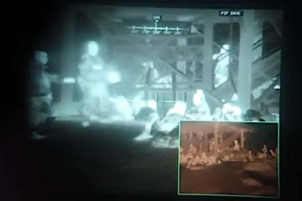 The footage reveals that the ENVG-Bs have left behind the emerald green tint of standard night vision goggles in favor of a reddish or gray coloration, an indication that the system is combining the input from a white phosphor image intensifier with a specialized thermal sensor for better visibility.