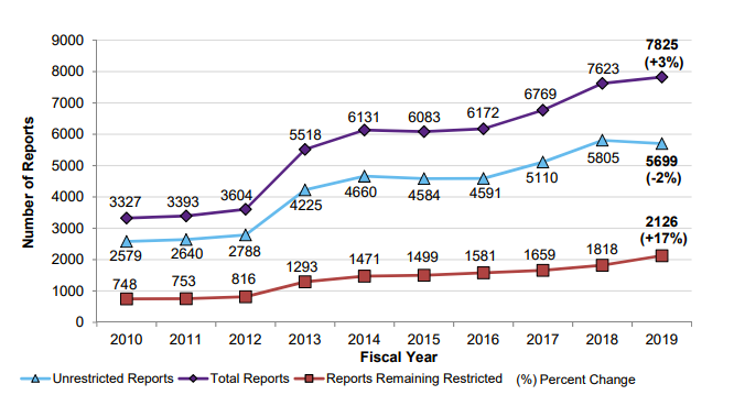 The Army specifically had the same rate of sexual assault reports — 5.5 reports per every 1,000 soldiers — in 2019 as it did in 2018, its highest reporting rate ever recorded.