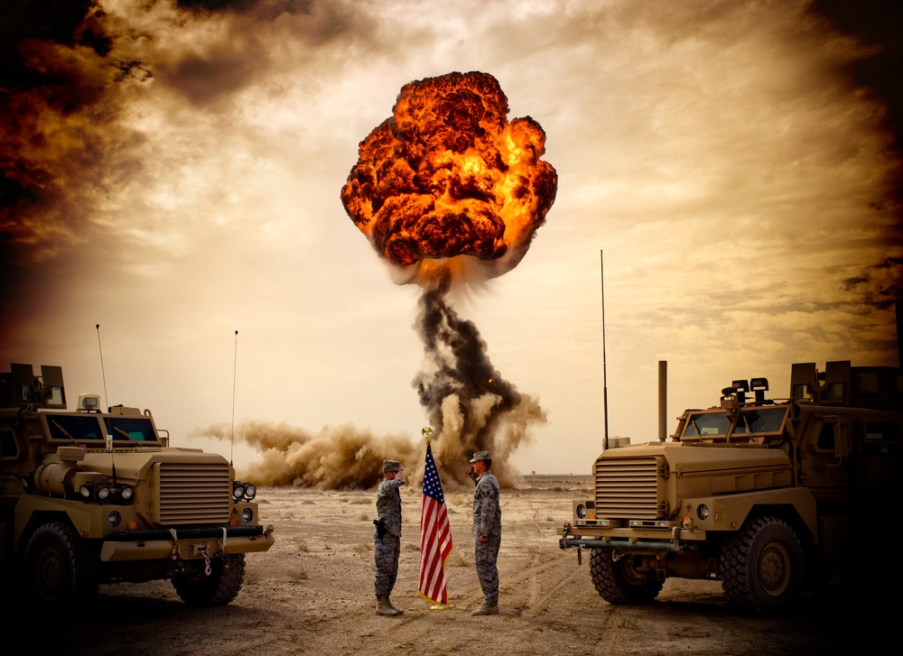 While the military is good at a lot of things, blowing stuff up is one of its specialties. So what could be more motivating than re-enlisting while one of those explosions goes off in the background? Five soldiers seemed to be thinking the same thing when they held up their right hands in the desert of the Explosive Ordnance Disposal Range at Camp Buehring, Kuwait on Sept. 8, 2021.