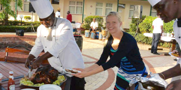 Thanksgiving coincided with “Africa Night,” a large barbeque held at the end of the course with a band, drummers, and traditional dancers. I had been to Africa Night before and enjoyed it, but was mostly excited this time because I hoped with everyone at the celebration and off the wifi, I might get a strong enough signal to be able to Facetime with my family — a big luxury for someone without a global cell phone. I forced myself into a party dress to make an appearance, but planned to slip away quickly.