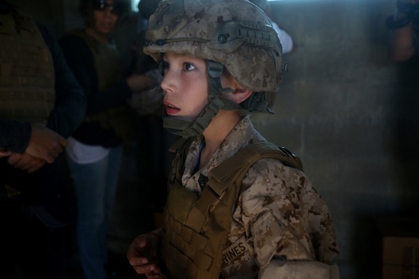 Nathan Aldaco, a 12 year-old boy with hypoplastic left heart syndrome, walks with Marines to a demolition site during a Make-A-Wish event supported by 7th Engineer Support Battalion, 1st Marine Logistics Group, at Camp Pendleton, California.U.S. Marine Corps photo by Sgt. Laura Gauna