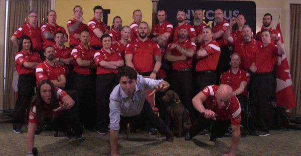 “I just thought I’d show our friends in the U.S. and the U.K. how Canada brings it,” Trudeau says, before he hops out of his chair and joins two athletes doing pushups on the floor.