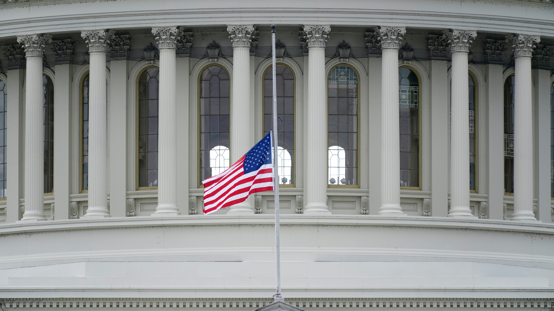 Featured photo: An American flag flies at half-staff in remembrance of U.S. Capitol Police Officer Brian Sicknick above the Capitol Building in Washington, Friday, Jan. 8, 2021. (AP Photo/Patrick Semansky)