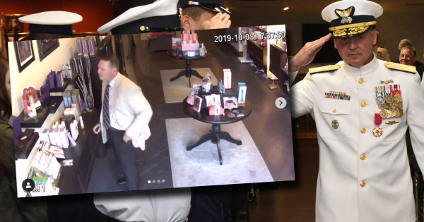 Retired Rear Adm. Francis Pelkowski was accused of taking an item from Kink Shoppe on Oct. 8, 2019, according to a now-removed Instagram post by the store. In the post, which included apparent security camera footage of the incident, a man could be seen looking at products on a counter before picking up an item and placing it in his pocket before turning and walking away. The original social media post claimed the man was Pelkowski.