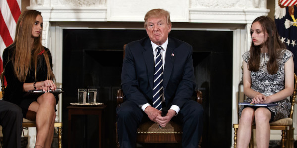 Responding to criticism of a Wednesday listening session in which the president proposed concealed carry among school faculty and staff “adept with the firearm,” Trump tweeted on Thursday that teachers “must be offense” because “defense alone won’t work.”