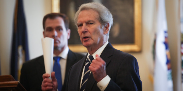 Congressman Ruben Gallego and Walter Jones speak to reporters during a press conference at the Cannon House Office Building in Washington, D.C. on Feb. 16, 2017.Task & Purpose photo by James Clark.