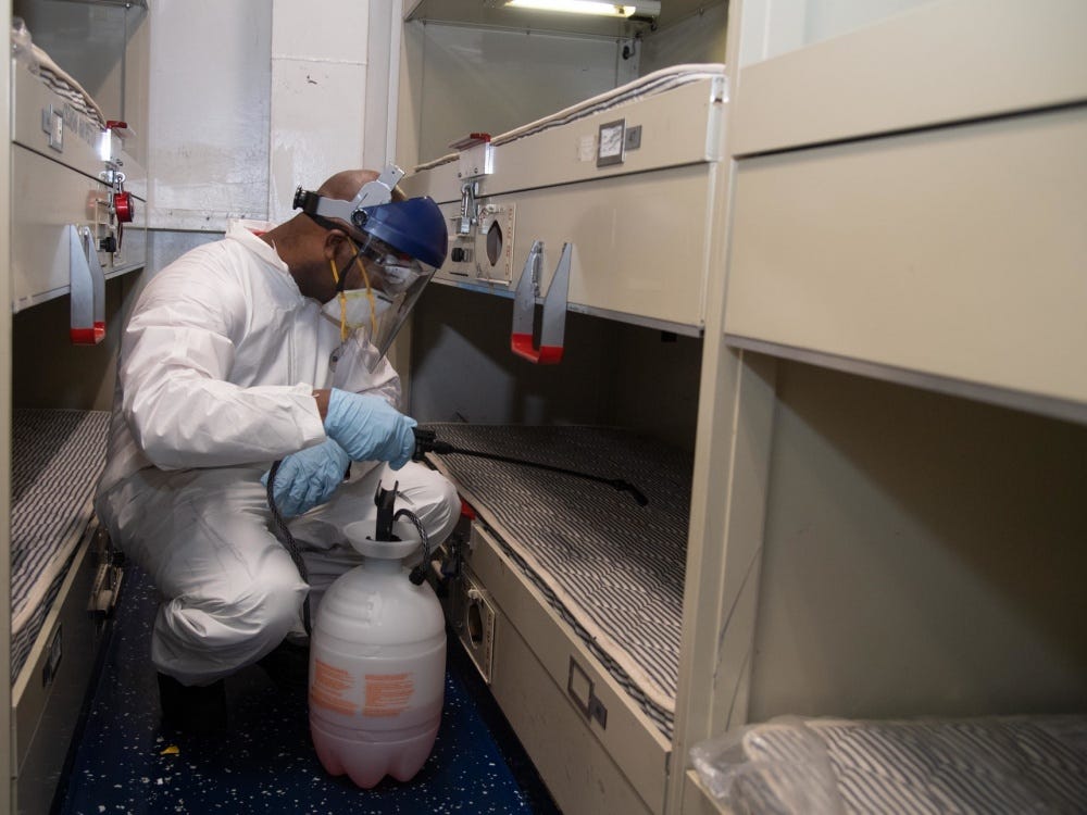 Crozier also lamented that the quarters being made available ashore for the ship’s crew were not individual rooms. Instead, sailors were expected to bunk on cots or in barracks with four people per room.