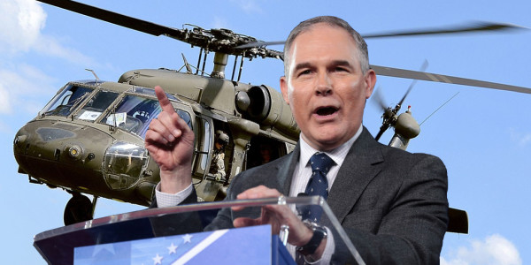 Besides, Pruitt missed out on serving in the military in his youth to set up a “Christian Legal Services” firm — presumably built around the core values of integrity, transparency, and thrift that he’s brought to his not-at-all contentious tenure at the EPA. Who knows? Maybe he can find a CH-53 to take him on his final ride out of Washington when he’s finally shitcanned. Or rather, if he’s ever shitcanned.