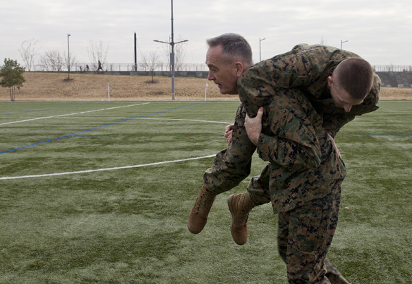 It might be tempting for some of the military’s top brass to get weighed down by all that bling on their collars, or slack off in the comfort of their plush chairs at the Pentagon. But not Marines like the 61-year-old Gen. Joseph Dunford, the chairman of the Joint Chiefs of Staff, who, in addition to maintaining his reputation as a PT stud, could probably kick your ass.