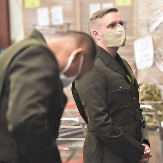They were issued a service coat, a long-sleeve and short-sleeve shirt, two pairs of pants, socks, tie, belt, gloves, a pair of shoes, and cap.