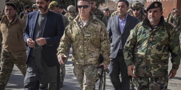 Operation Resolute Support tweeted a picture of the general and his weapon on Nov. 22, raising questions about whether security in Afghanistan is so precarious that the top U.S. military commander there needs to have an M4 at the ready at all times.
