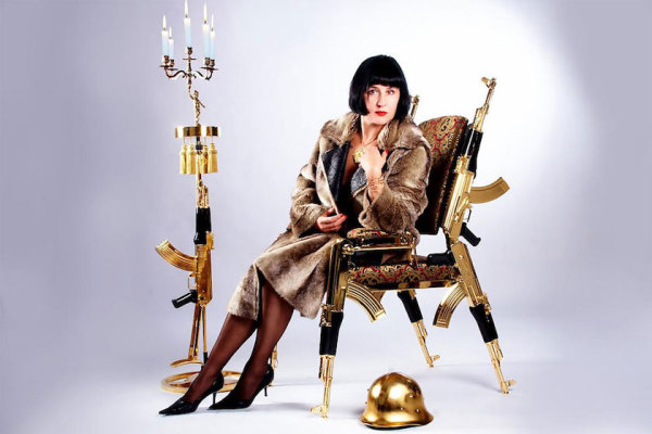 Not to worry. Austrian artist Rainer Weber has just the thing. His latest creation — a royal throne made of gold-plated Kalashnikovs, along with a matching floor lamp — is pretty sweet. It’s “for collectors, art- and design-lovers or people who like the exceptional,” the artist’s website notes.