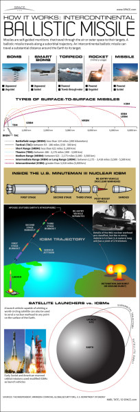 According to the Federation of American Scientists, ICBMs have ranges greater than 3,400 miles and “enable a country to break out of a regional context and move toward potential global impact.” (That, of course, is North Korea’s intent here.) An ICBM travels along a suborbital trajectory, which means it leaves the Earth’s atmosphere. The recently tested engine could, in theory, give the North Koreans the ability to execute that specific phase of a launch. But what North Korea has yet to master is the technology that would allow the ICBM to reenter the atmosphere without being destroyed. If they do, we might be in trouble.