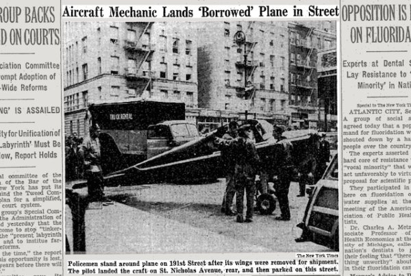 Both landings were pulled off in incredibly narrow landing areas, in the dark – and after a night of drinking in Washington Heights taverns and with a well-lubricated pilot at the controls. Both times ended with Mr. Fitzpatrick charged with wrongdoing.