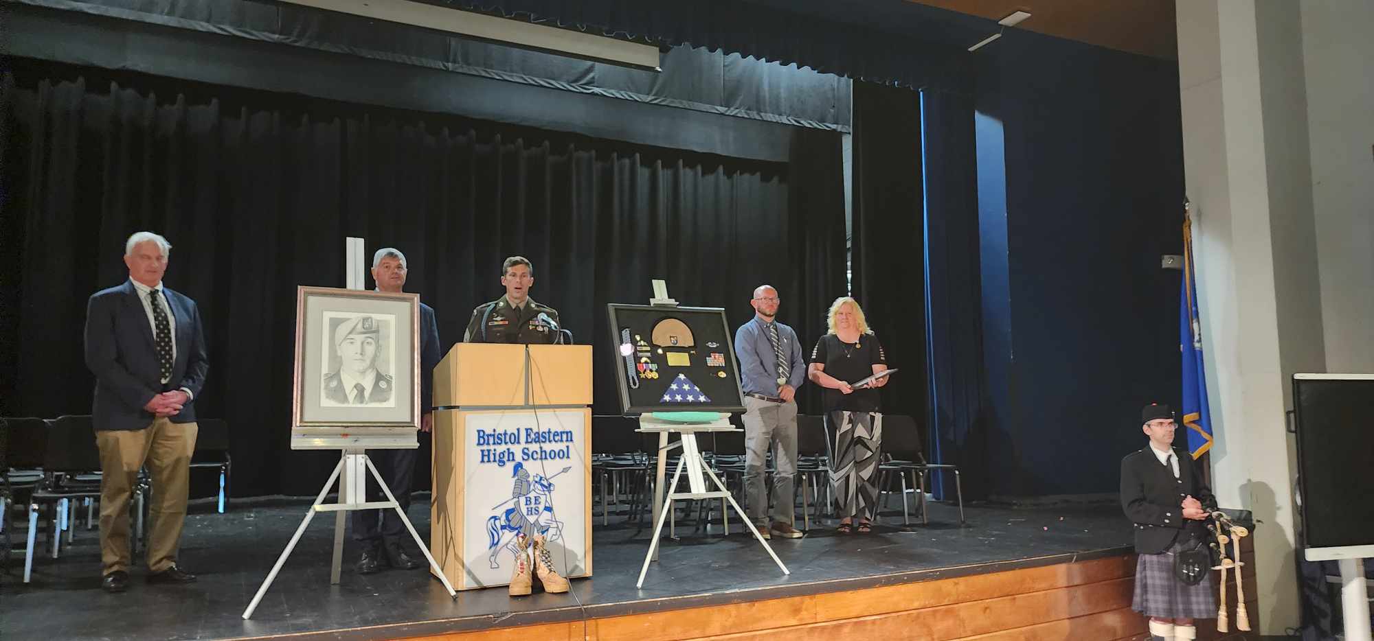 The halls of Bristol Eastern High School, Connecticut echoed with the Ranger Creed Tuesday afternoon. Legendary Ranger Joseph “Kap” Kapacziewski once walked these same halls as a teenager before becoming the first Ranger to return to combat with a prosthetic leg.
