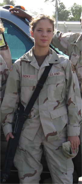 Growing up as the daughter of a soldier, Noky traveled with her family from post to post. Her father encouraged her to join the Air Force, but “one thing led to another,” and she enlisted in the Army in 2002 as an air traffic controller and sub-system repair specialist.