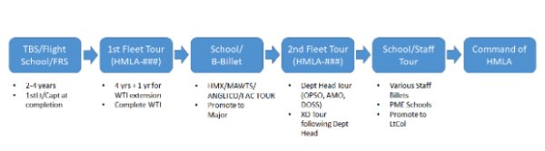 Graphic 1. Perceived career path of a generic H-1 Aviator from polled input of company Grade Aviators in the H-1 community.