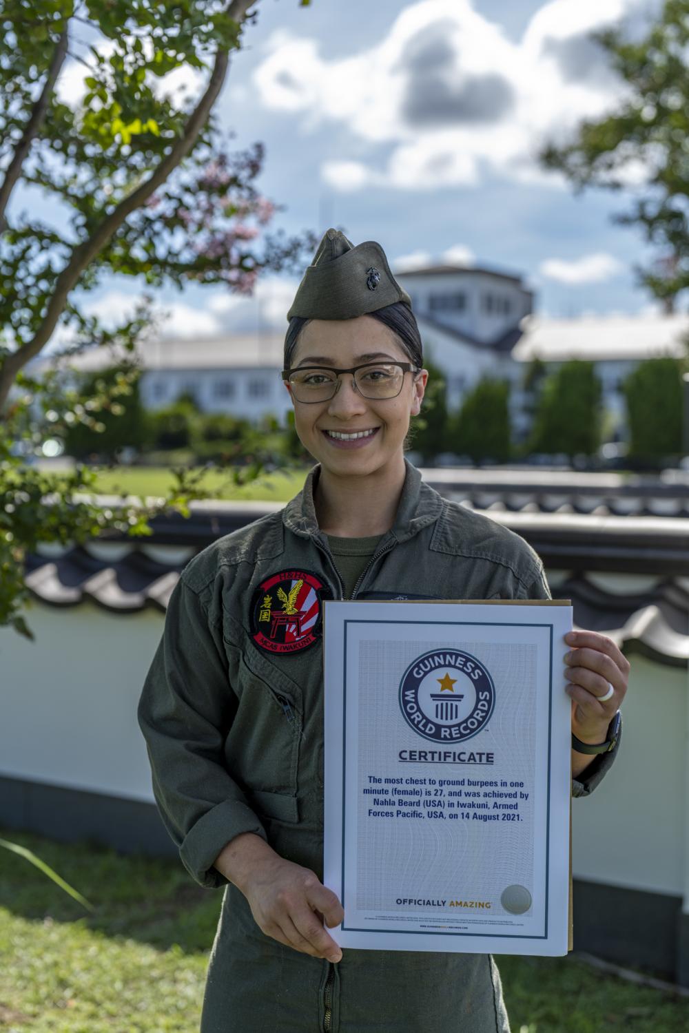 That push to get fit reached a peak last year when Beard performed 27 chest-to-ground burpees in one minute, setting a Guinness World Record in the process. But it was a long road to get there. An air traffic control supervisor with Headquarters and Headquarters Squadron (H&HS) at Marine Corps Air Station Iwakuni, Japan, Beard loaded up on aerobic physical training sessions after her back injury in order to improve her cardiovascular fitness. Her secret: remembering to stretch afterwards.