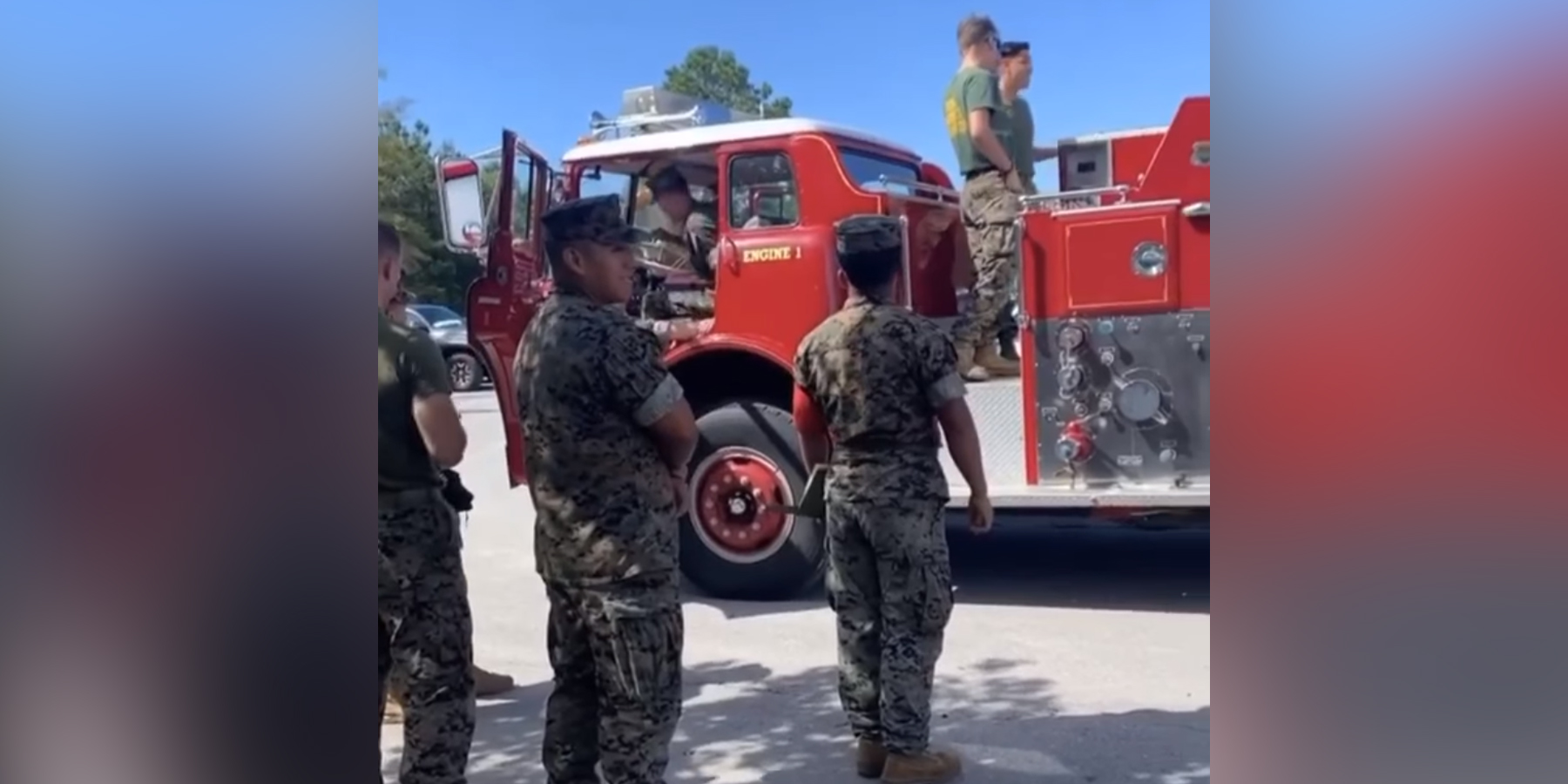 The video quickly racked up comments from readers on Twitter , Facebook, and Instagram, many of whom suggested the fire truck in question was on Marine Corps Base Camp Lejeune, North Carolina.