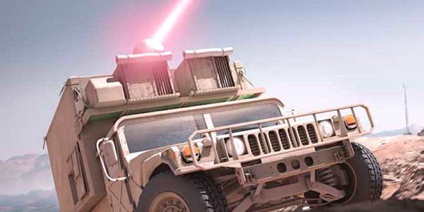 An artist’s illustration of a high-energy laser weapon mounted on a U.S. Marine Corps HumveeRaytheon