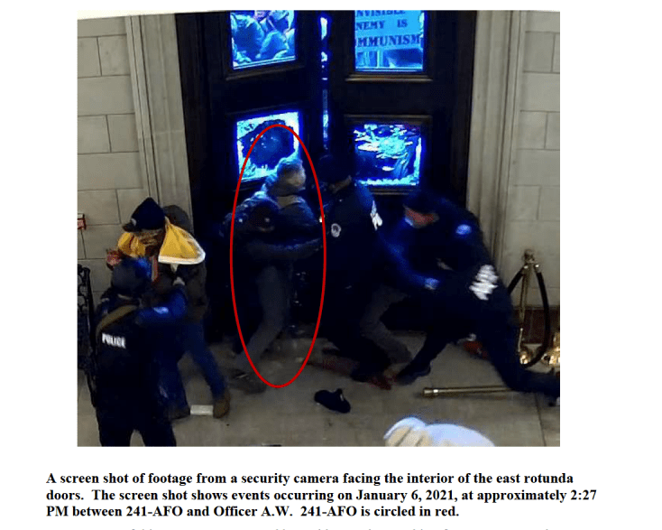 Court documents say Maj. Christopher Warnagiris pushed through a line of police officers at the Capitol that afternoon and then positioned himself in the doorway and helped pull others inside. The 40-year-old Marine officer allegedly pushed a U.S. Capitol Police officer “in an effort to maintain his position” in the doorway, according to the Justice Department.