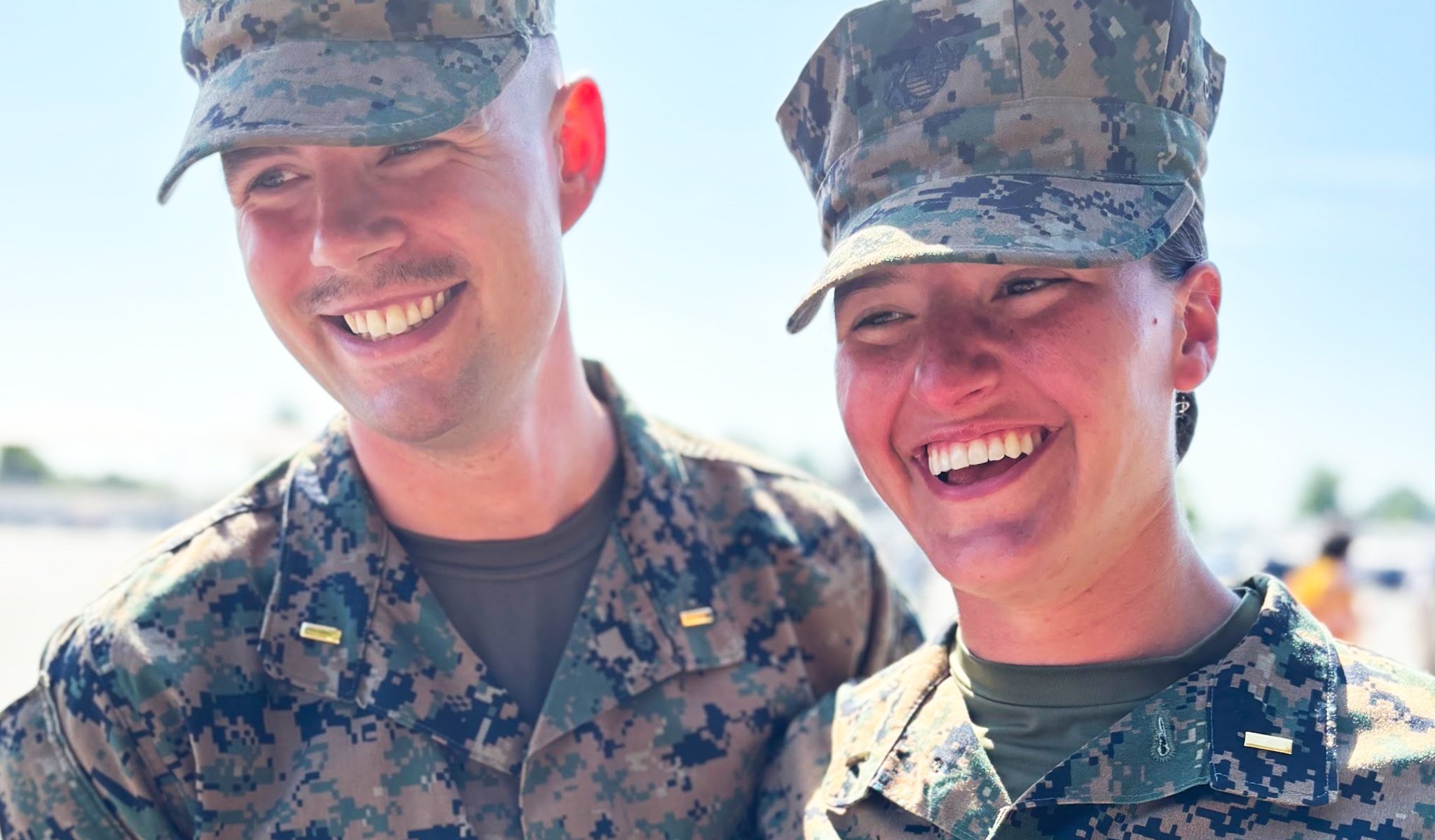 Shortly after completing Marine Officer Candidates School this summer, Donald Reichard pinned second lieutenant bars on a fellow OCS graduate: His wife Cheyanne.