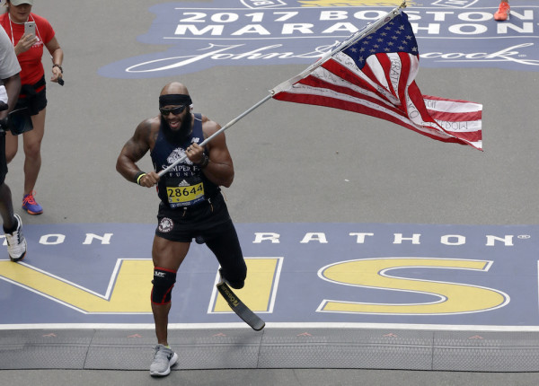 Outfitted with a “blade runner” prosthetic, the retired Marine staff sergeant participated in the 2017 race as a member of Team Semper Fi, an organization founded to aid members of the U.S. armed services “who are dealing with life-changing injuries, post-traumatic stress or critical illness,” according to the Boston Globe.