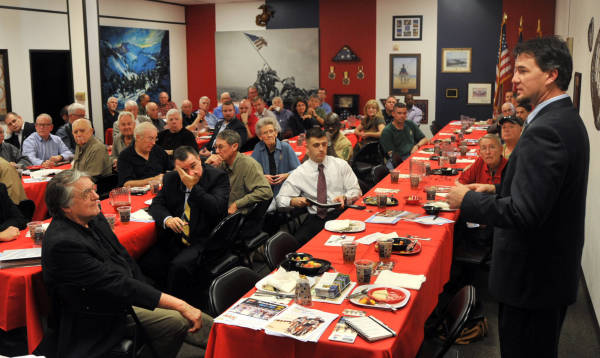 etired Marine Staff Sgt. John P. Jones, a double amputee, speaks about his experiences in Iraq to the Metroplex Marines Feb. 7, 2013, in Carrollton, Texas.U.S. Marine Corps photo