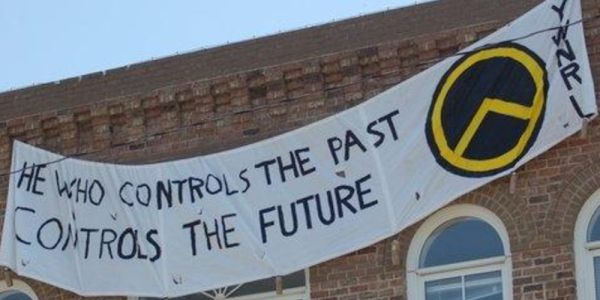 Staff Sgt. Joseph Manning, of the Marine Corps Engineer School at Camp Lejeune, was charged with first-degree trespassing after unfurling a banner with the letters “YWNRU” — short for “You Will Not Replace Us,” the favorite maxim of the white nationalist group Identity Evropa established by Marine vet Nathan Damigo in 2016. Manning had mounted the flag in Graham, North Carolina, across from town’s historic courthouse during a rally by Alamance County Taking Back Alamance County, a neo-Confederate group.