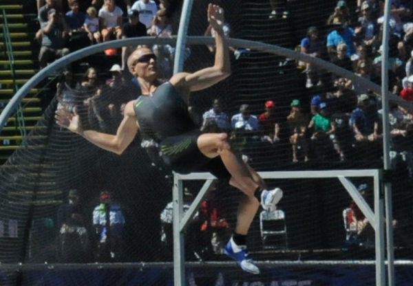 First Lt. Cale Simmons clears the bar during the U.S. Olympic track and field trials in Eugene, Oregon, July 2, 2016.Air Force photo