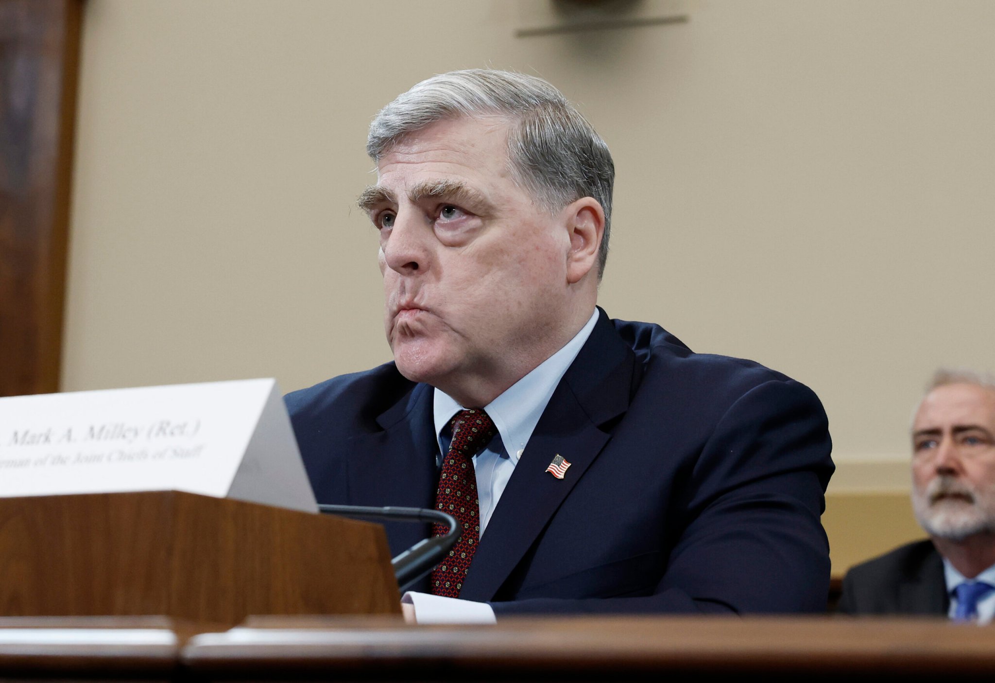 Wearing a blue suit and burgundy tie rather than the uniform of the 4-star Army general he was until last September, Milley testified at a hearing of the House Foreign Affairs committee hearing Tuesday on the Biden administration’s handling of the Afghan withdrawal in 2021.