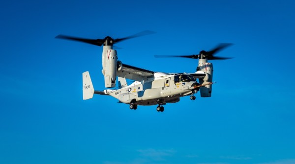 The first of the CMV-22B Osprey tiltrotor aircraft the Navy plans on adopting as its carrier onboard delivery (COD) aircraft of choice has successfully completed its first flight operations, manufacturer Boeing announced on Tuesday.