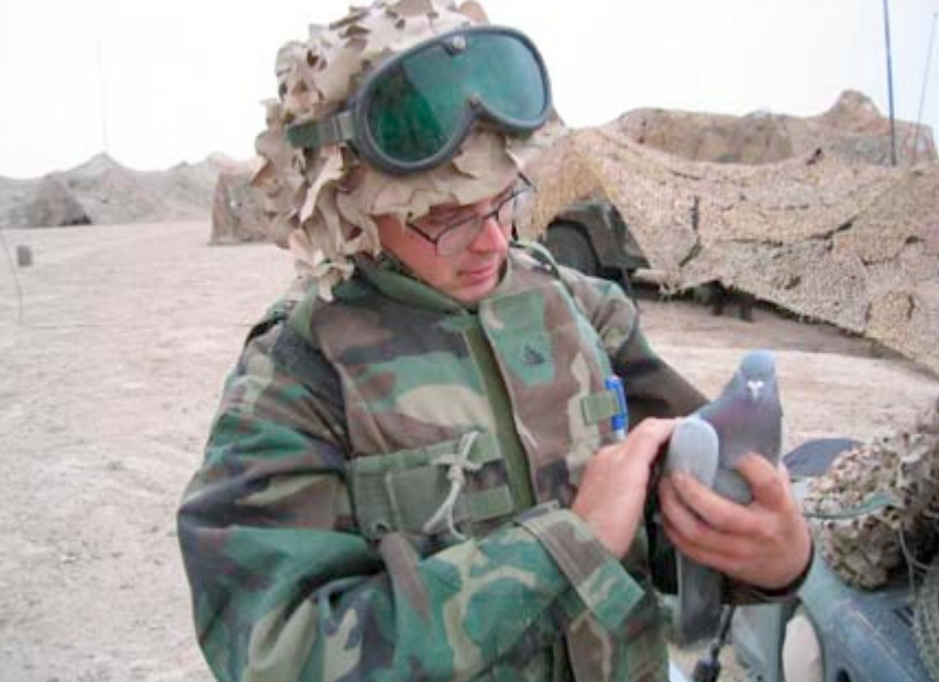 Even as recently as 2003, the 1st Marine Division brought pigeons with them to Iraq to serve as canaries in the figurative coal mine for detecting possible nuclear, biological and chemical agents being used against them. The pigeons took the place of chickens, who did not fare well in the Marines’ camp.