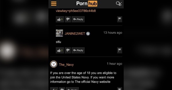 A screenshot from Pornhub obtained by Task & Purpose shows the account’s name is “The_Navy” and it uses the service’s official logo — but the poor grammar and a typo are strong indicators of shenanigans.