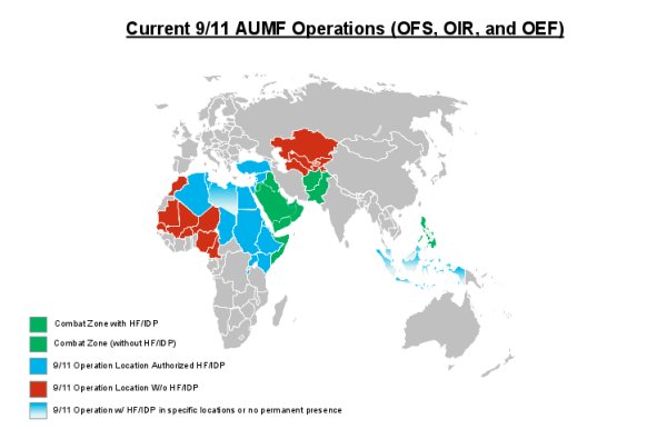 Current U.S. military areas of operations justified under the 2001 Authorization for the Use of Military Force passed after the 9/11 terror attacks