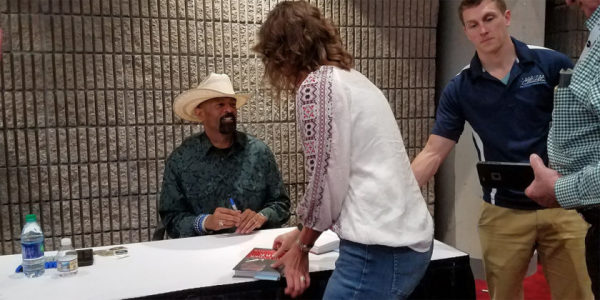 Much more action revolves around book signings by pundits like Iran-Contra Marine Oliver North — who once secretly sold U.S. missiles to Iran to fund an illegal war in South America, and gave the NRA’s opening-day invocation in the name of “Jesus Christ, our savior” — and Milwaukee Sheriff David A. Clarke, who posed for crowds with his comically large cowboy hat and haughty memoir, “Cop Under Fire,” while back home, a grand jury recommended charges against several of his jail staffers in the dehydration death of an inmate who was refused water for seven days.