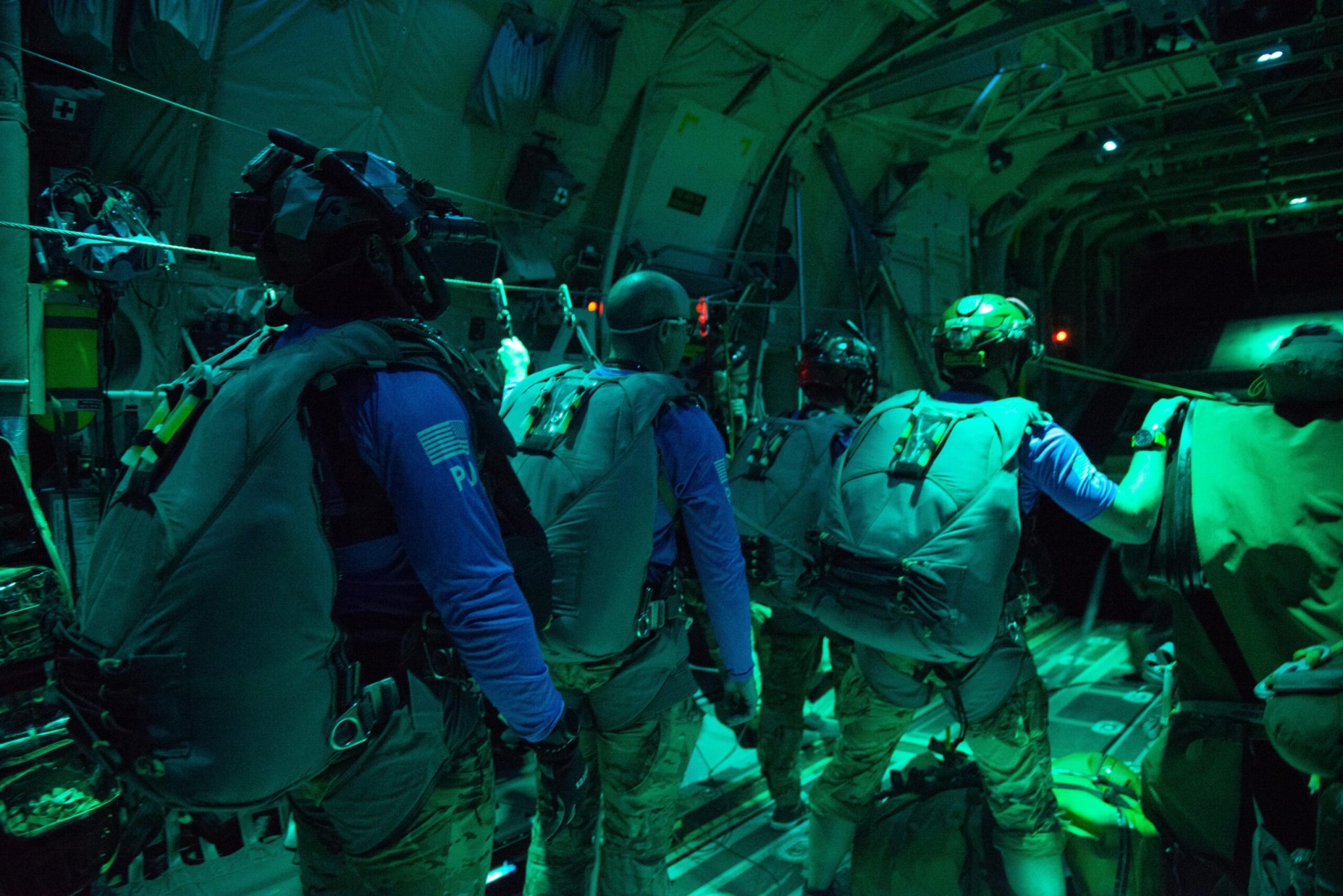 Though HC-130s are primarily used as tankers to refuel HH-60 rescue helicopters, their crews train regularly to support long-distance jump missions. Pictures and video of the mission released by the Guard show the PJs filled much of the HC-130s cargo bay with parachutes, medical and ocean survival gear, and two specially packaged rubber boats that PJs developed in the 1980s for mid-ocean rescue missions. The boats are dropped by parachute and, once in the water, PJs inflate them using a scuba tank.
