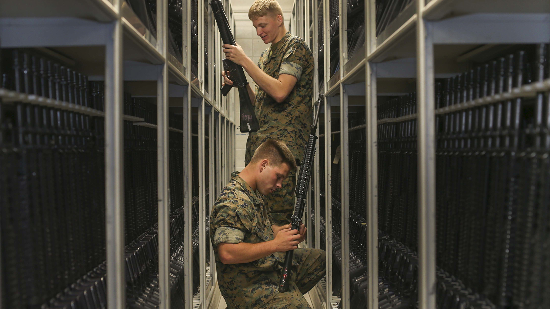 Featured image: Marines who work at the armory perform weapons check on a weapons on Marine Corps Recruit Depot Parris Island S.C. June 21, 2019. The armory is in charge of over 10,000 rifles on Parris Island.(U.S. Marine Corps photo by Lance Cpl. Ryan Hageali)
