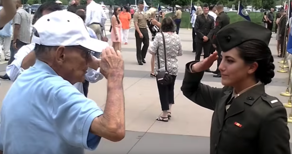 There’s a video of a Marine officer receiving her first salute from her grandfather currently blowing up on Reddit, and, well, is someone cutting onions in here?