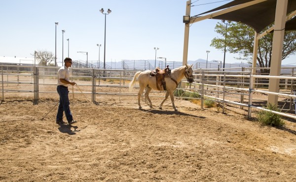 The horses, provided to the color guard from the Bureau of Land Management, are partially trained ahead of time by prison inmates at the Northern Nevada Correctional Center Wild Horse Training Facility in Carson City, Nevada.