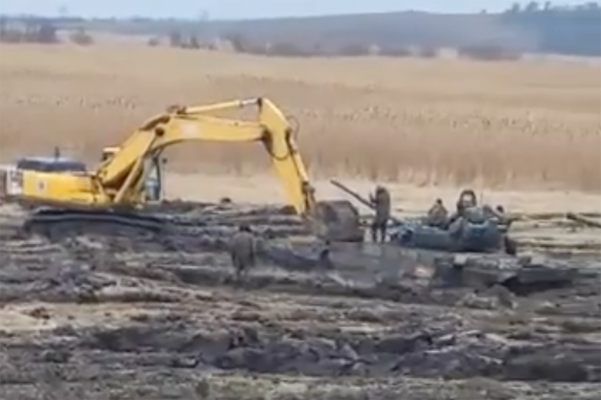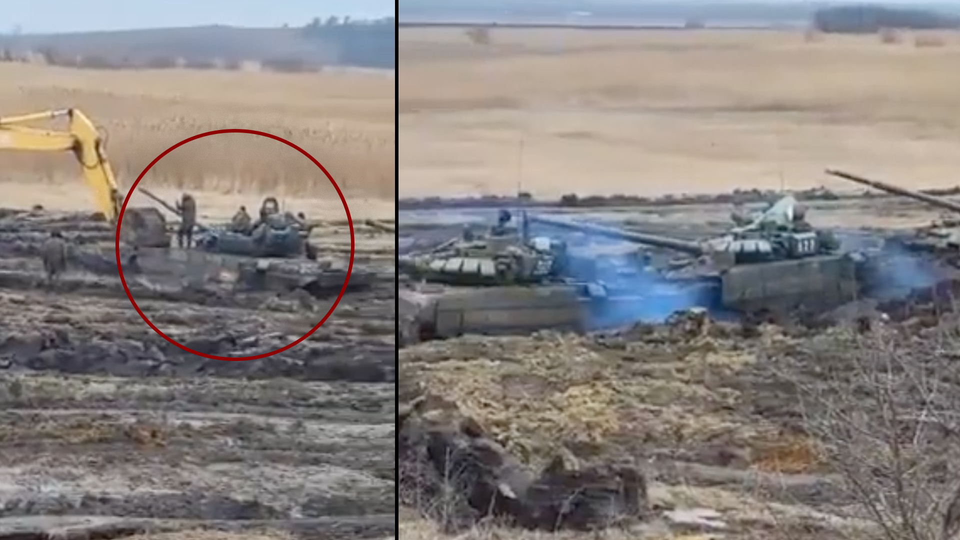 Over the weekend, footage emerged of Russian tanks defeated by the elements. Posted to Twitter by Liveuamap on Feb. 10, the video shows a formation of tanks ground to a halt and stuck in the mud. A lone excavator is deployed trying to dig them out. The video was reportedly taken at a military range in the Rostov region of Russia, near the southeastern border with Ukraine.