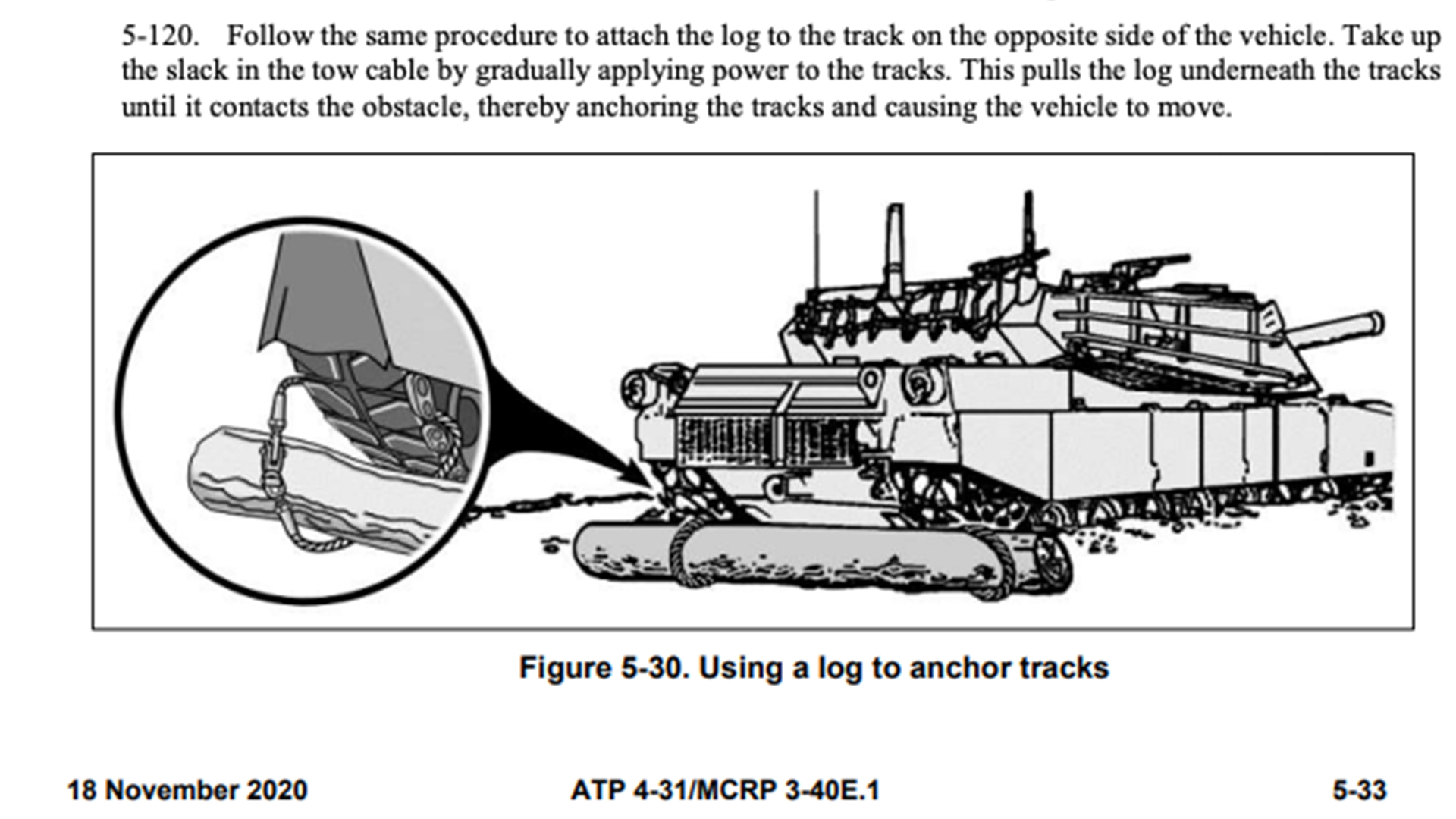 Yanking a tank free from the muck is even more challenging without a Mike 88 or the M984 Wrecker, which can also pull tow duty. So-called self-recovery operations are a pain in the ass. The reason tanks get stuck in the mud is because the tracks cannot generate enough traction in the soft earth to move forward. The solution? Generate your own traction. One Army guide recommends that mired crews “obtain a log” to extract themselves. The guide then illustrates how crews can place the log so that it gives the tracks something to cling onto and escape the muck. In fact, many tanks carried logs with them in World War II specifically for that purpose.